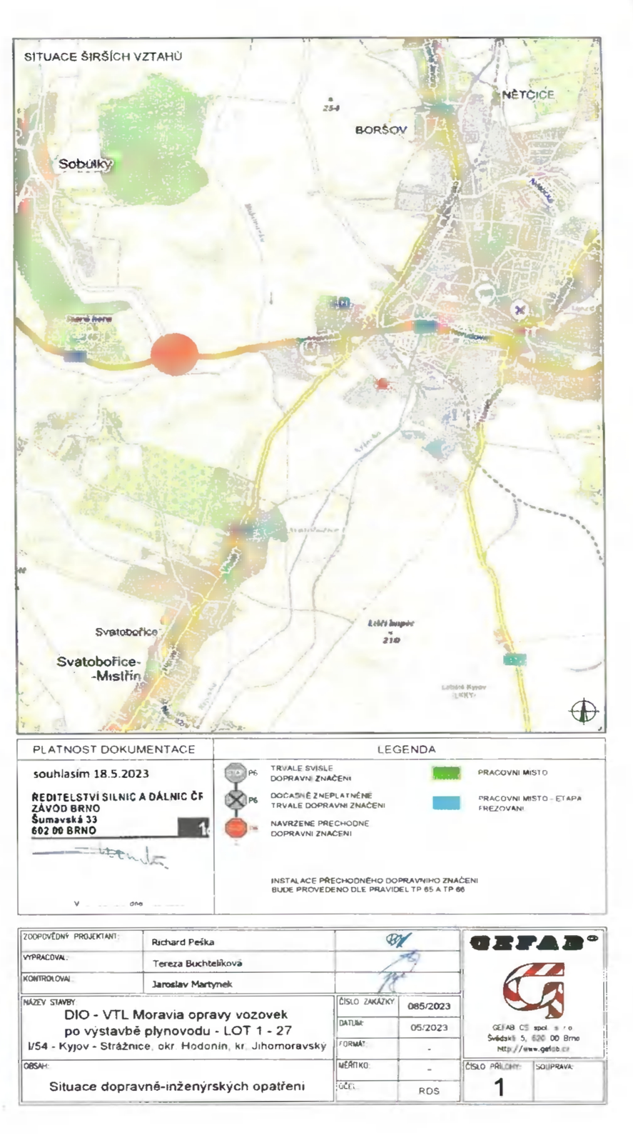 Budou zde probíhat stavební práce opravy části silnice I/54 v místě, kde silnici I/54 křižuje vysokotlaký plynovod „MORAVIA“