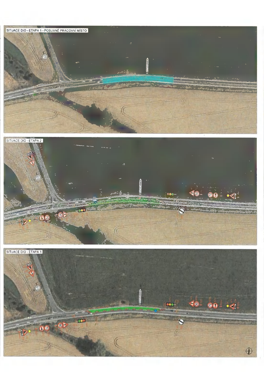 Objízdná trasa bude po zbylé části silnice I/54 – kyvadlový provoz, úsek řízen světelným signalizačním zařízením – viz situace přechodného dopravního značení