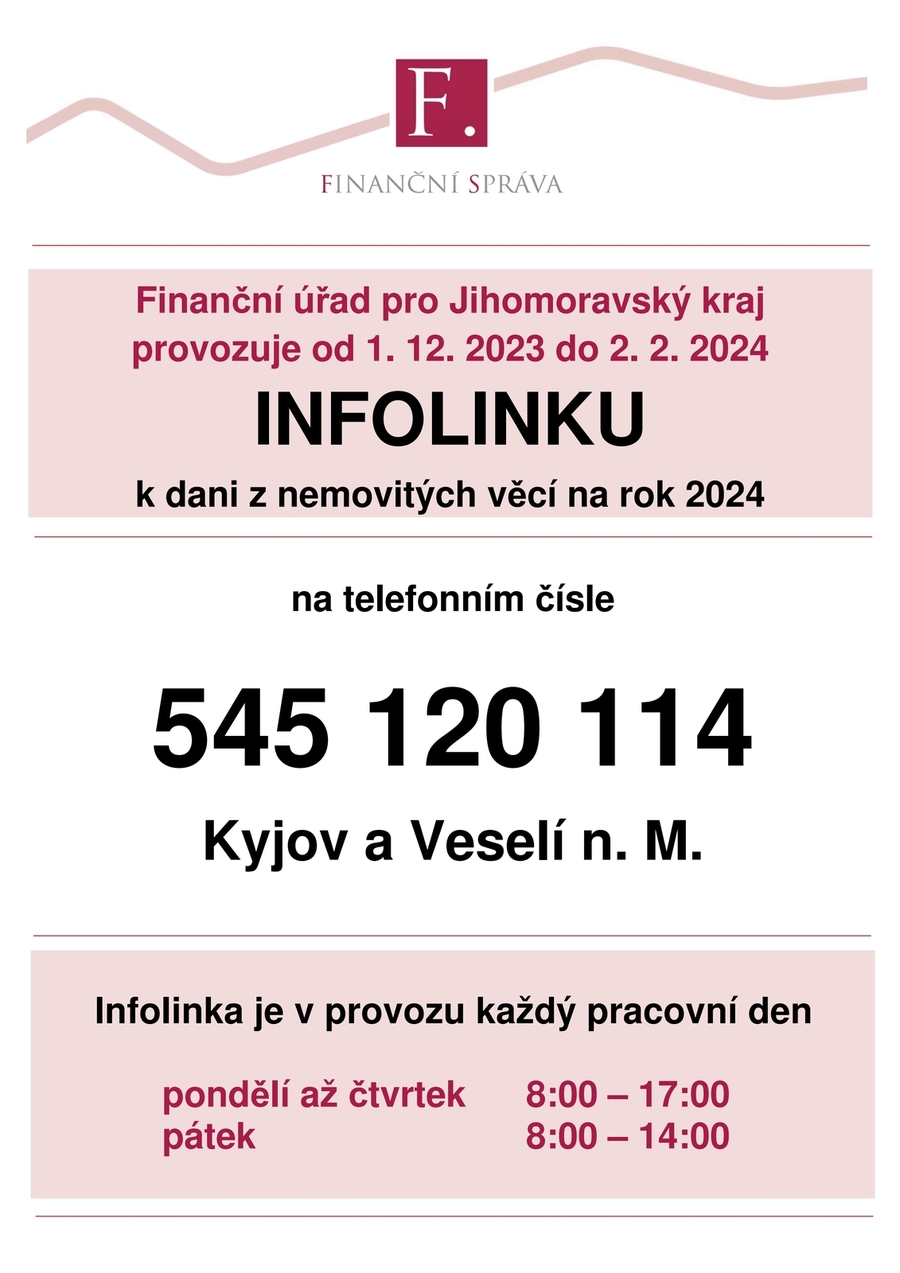 Úvod > Dění v obci > Aktuality > Infolinka - Finanční úřad