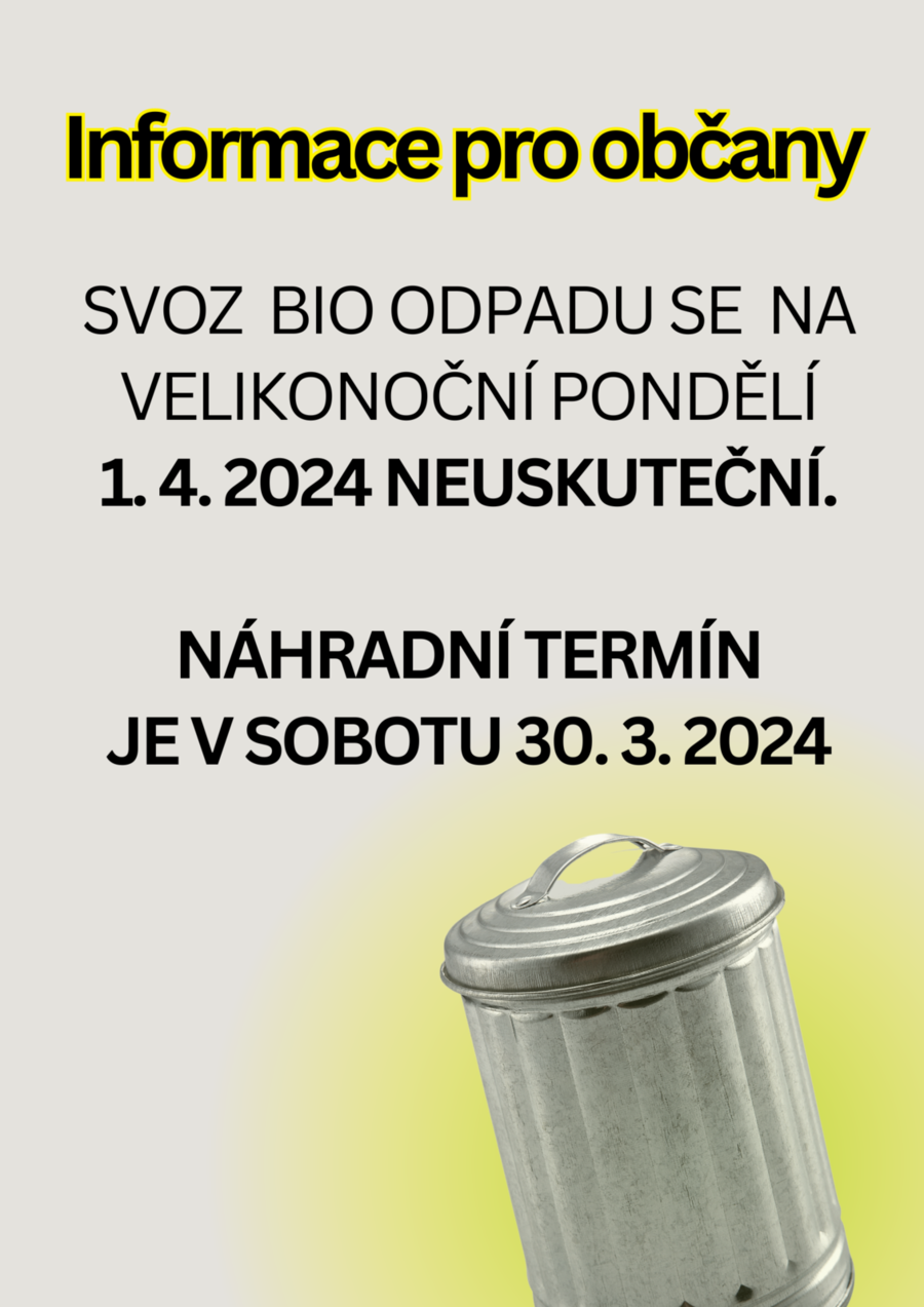 Úvod > Dění v obci > Aktuality > Informace ohledně svozu BIO odpadu na Velikonoční pondělí
