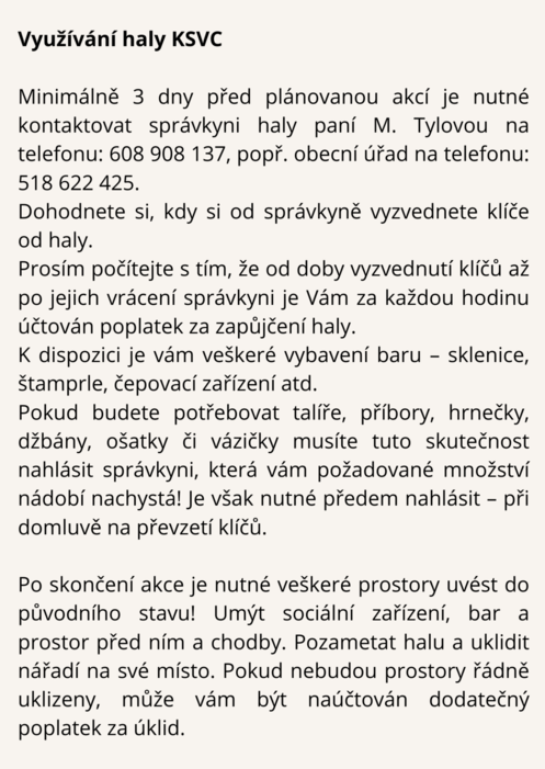 Úvod > Dění v obci > Aktuality > Využívání haly KSVC