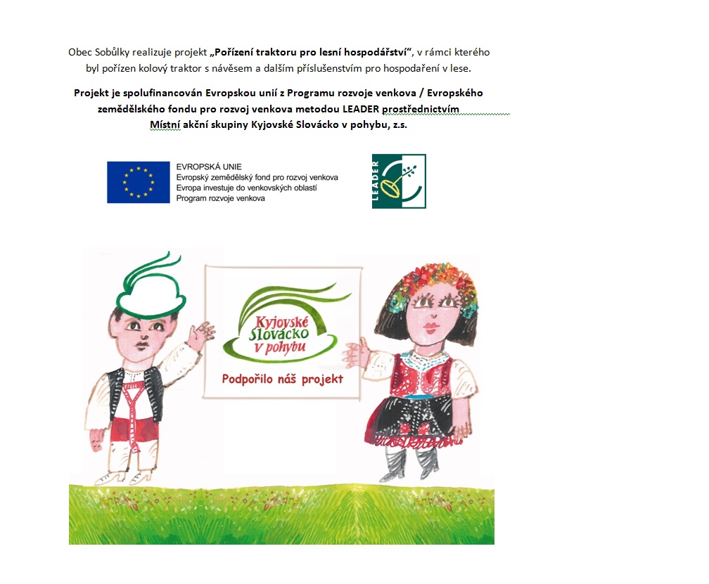 Obec Sobůlky realizuje projekt „Pořízení traktoru pro lesní hospodářství“, v rámci kterého byl pořízen kolový traktor s návěsem a dalším příslušenstvím pro hospodaření v lese.